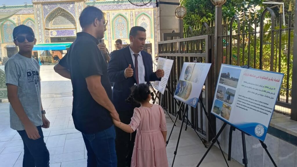 مركز حقوق الانسان في العراق كربلاء المقدسة – أقام مركز حقوق الإنسان في العراق بالتعاون مع وقف توركمن إيلي، وبالتنسيق مع العتبة العباسية المقدسة، معرضًا توثيقيًا في ساحة ما بين الحرمين في كربلاء المقدسة، تناول الانتهاكات الجسيمة لحقوق الإنسان التي تعرضت لها المناطق التركمانية في العراق بعد عام 2003. المعرض ضمّ مجموعة من اللوحات التوثيقية التي جسدت حجم المعاناة التي مرّ بها الشعب التركماني نتيجة العمليات الإرهابية، ومن أبرزها أحداث أمرلي الصمود، وتلعفر، وتازة خورماتو، وبشير، حيث سلطت الأعمال المعروضة الضوء على الجرائم ضد الإنسانية والانتهاكات الواسعة التي لحقت بأهالي هذه المدن والقصبات. وأكد القائمون على المعرض أن الهدف من إقامته هو إيصال رسالة إنسانية للعالم أجمع عن حجم المآسي والانتهاكات التي لحقت بالمجتمع التركماني، وضرورة الاعتراف بها كجرائم ضد الإنسانية، والعمل على ضمان عدم تكرارها مستقبلاً. المعرض شهد حضورًا واسعًا من الزائرين والمهتمين، الذين تفاعلوا مع ما عُرض من لوحات وصور وثائقية، معبرين عن تضامنهم مع ضحايا الانتهاكات، ومؤكدين أهمية مواصلة الجهود الحقوقية لتوثيق هذه الجرائم ومطالبة الجهات المعنية بمحاسبة مرتكبيها.