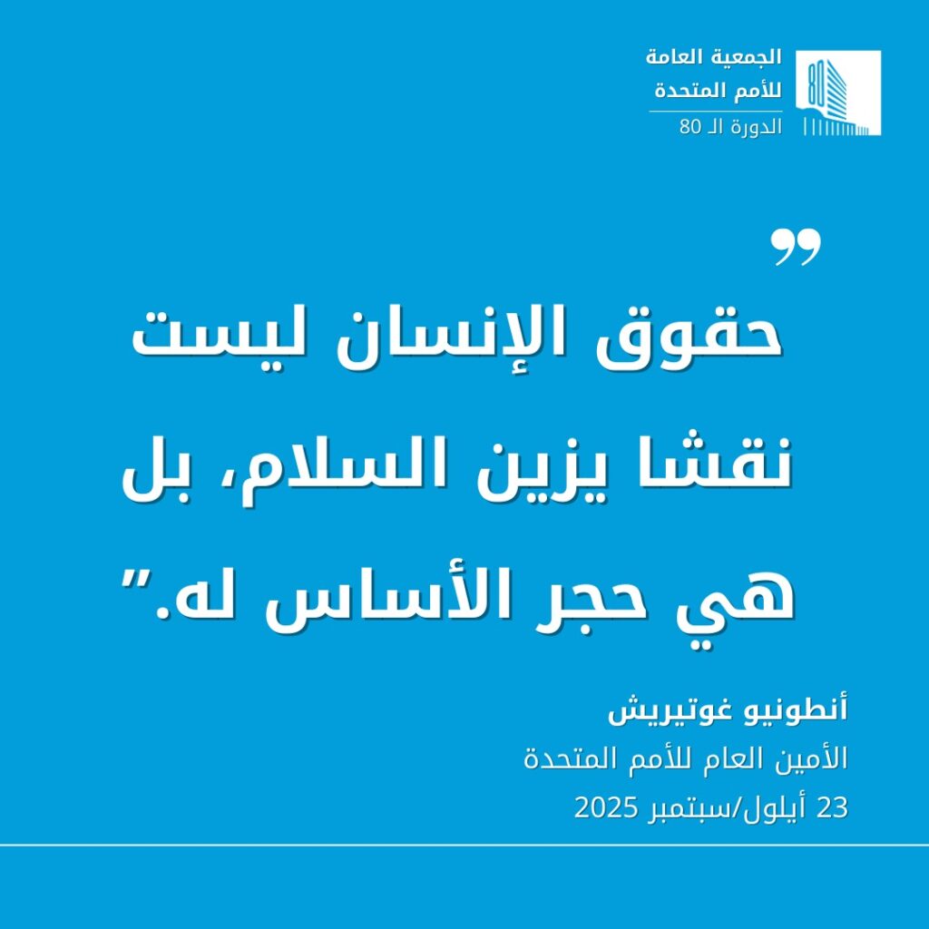 “حقوق الإنسان ليست نقشا يزين السلام، بل هي حجر الأساس له.” –الأمين العام للأمم المتحدة